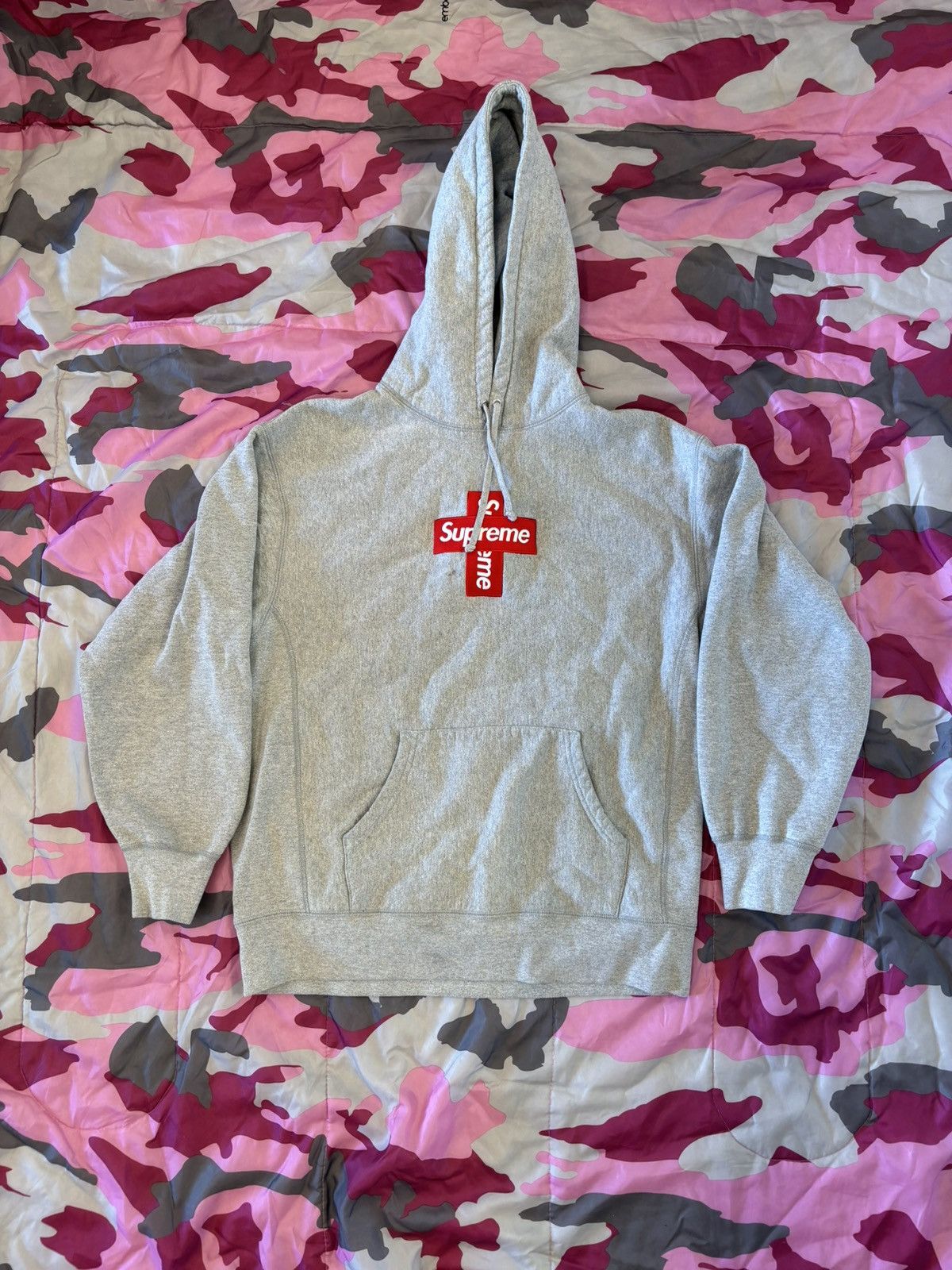 Product Name: Supreme cross box logo hooded sweatshirt heather grey cheap