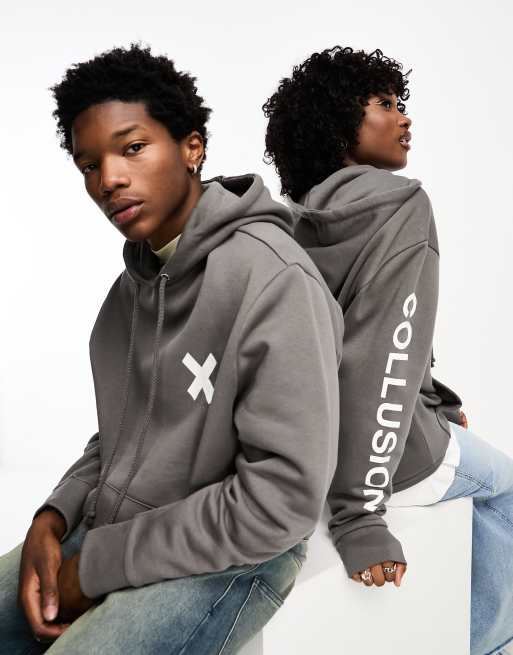 Product Name: Collusion unisex logo hoodie in dark grey cheap