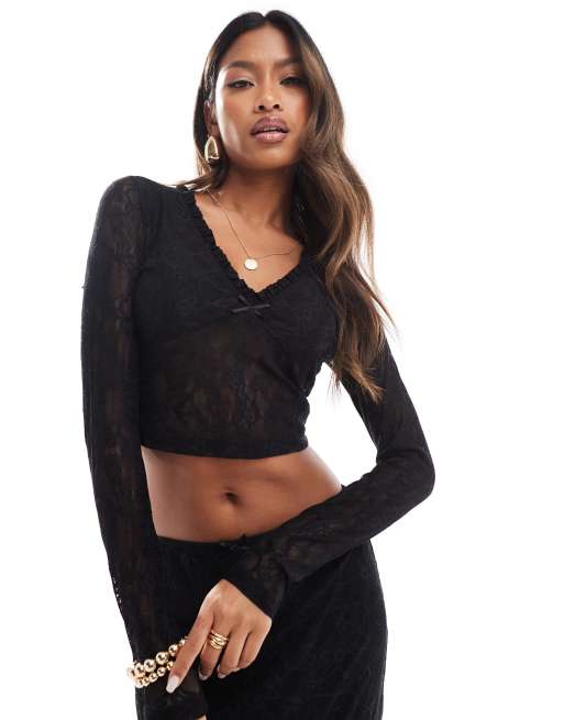 Product Name: Crop top de encaje manga larga cheap