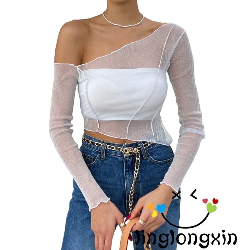 Product Name: Drop shoulder lettuce trim glitter sheer top cheap